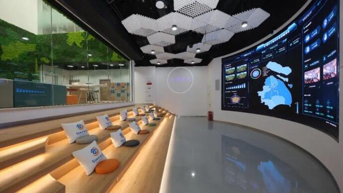 每个区域的空调末端都连接着控制面板,大厅曲面屏实时展示环境监测、光伏发电量以及能耗数据,屋顶架满了太阳能光伏板,一切未来感十足。这是位于上海的张江科学城的中国建设银行丹桂路支行打造的绿色示范银行网点。通过低碳更新改造,这家银行网点初步实现了可再生能源利用和碳足迹管理。