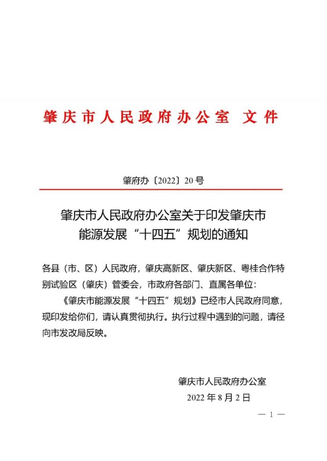 《肇庆市能源发展“十四五”规划》已经市人民政府同意,现印发给你们,请认真贯彻执行。执行过程中遇到的问题,请径向市发改局反映。