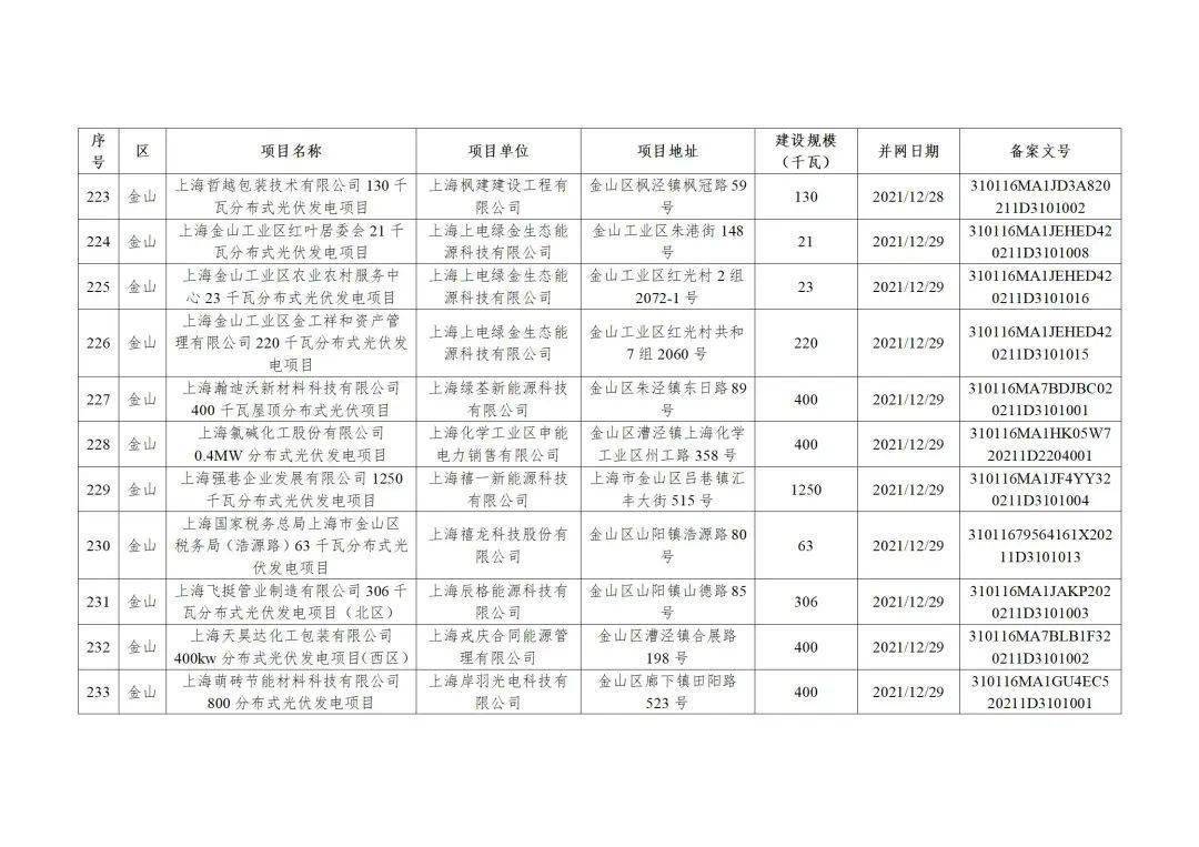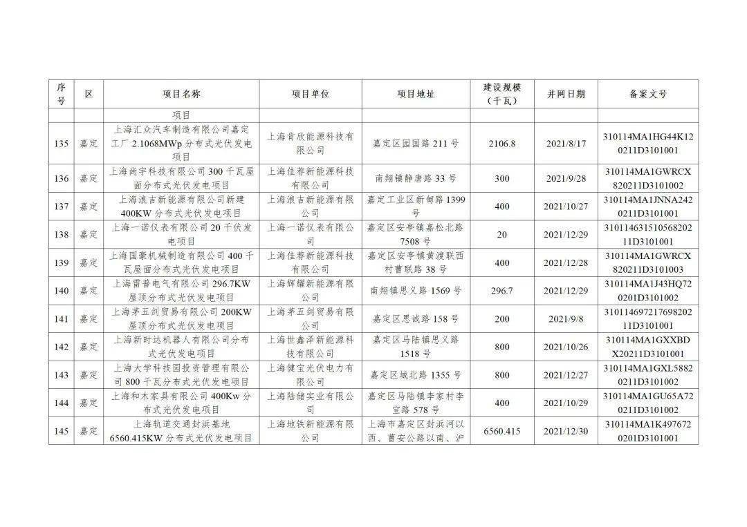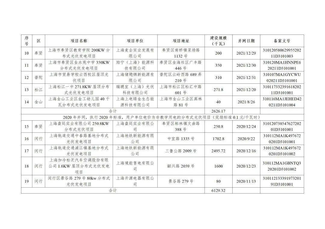 上海市2022年度第二批可再生能源和新能源发展专项资金奖励目录(草案)公示