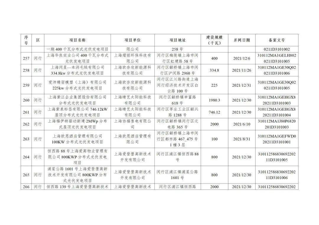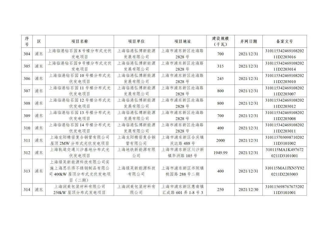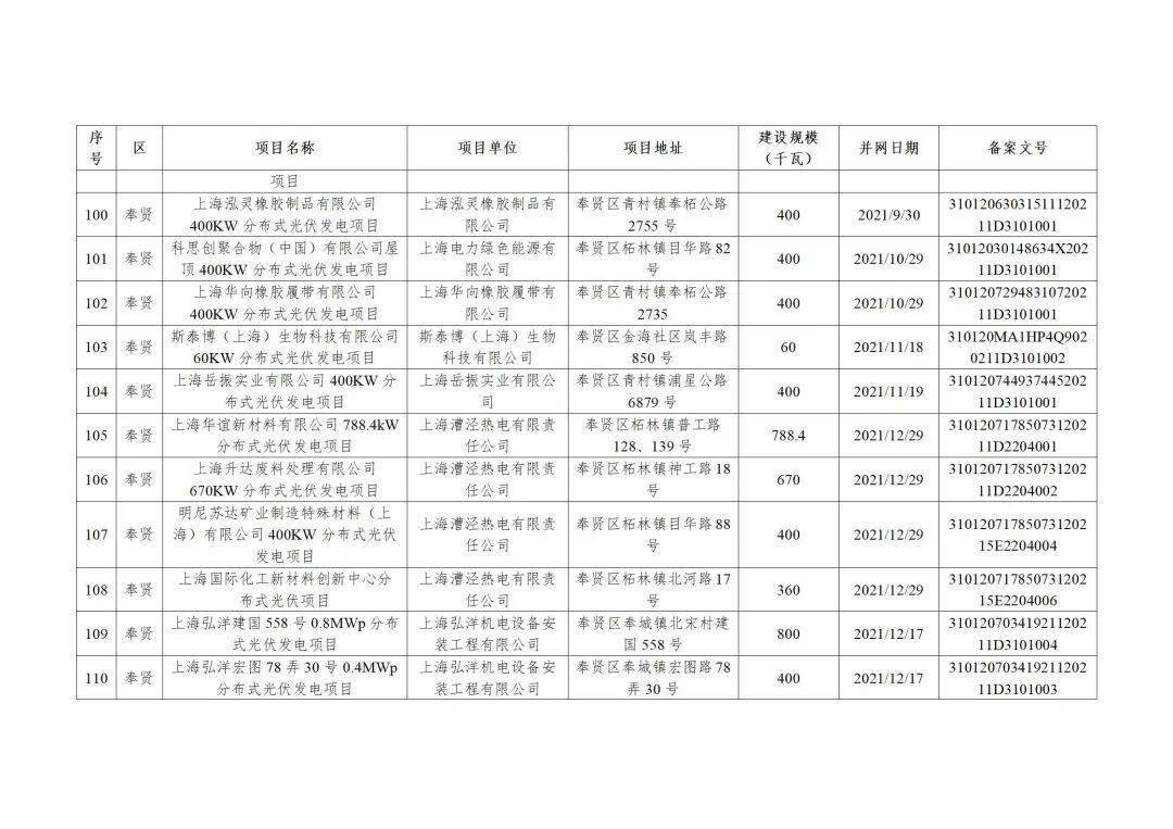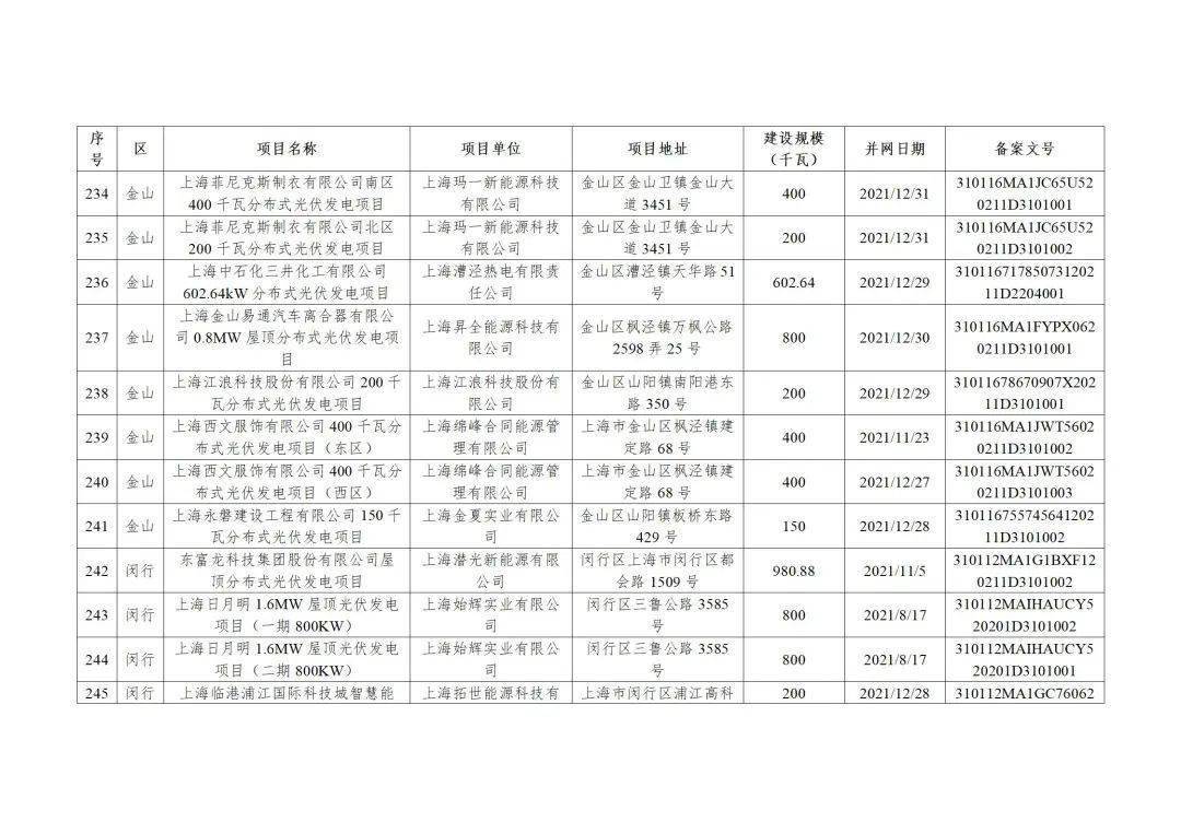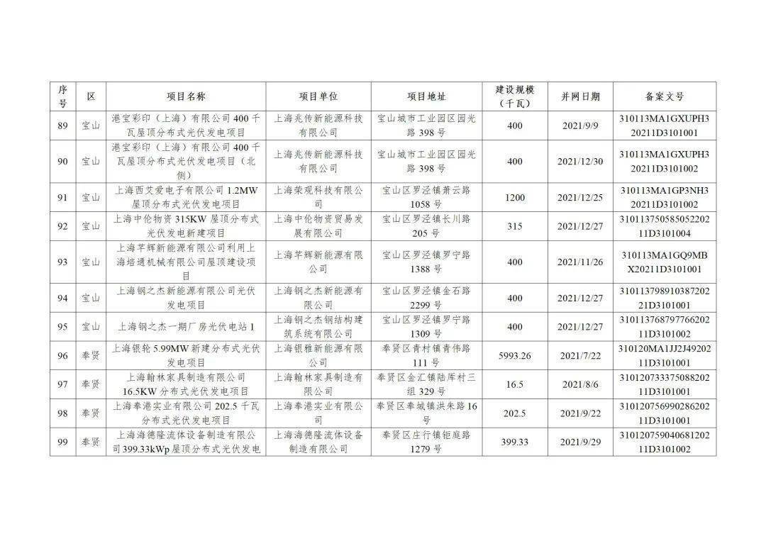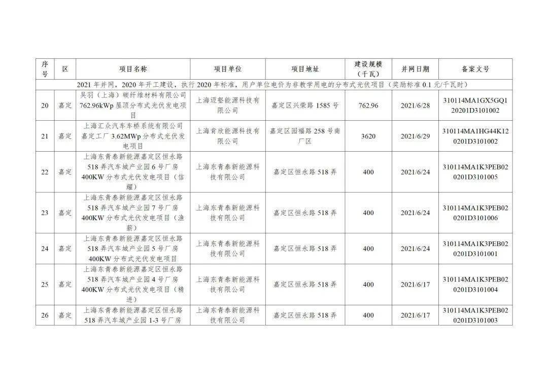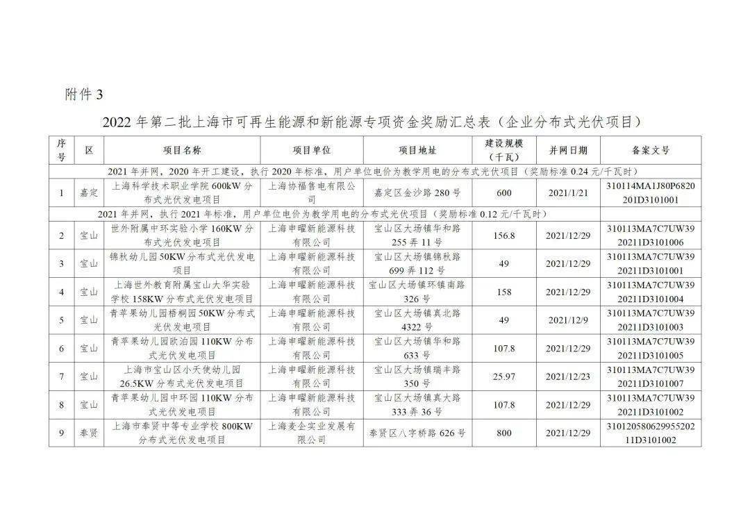 附件3:2022年第二批上海市可再生能源和新能源专项资金奖励汇总表(企业分布式光伏项目)