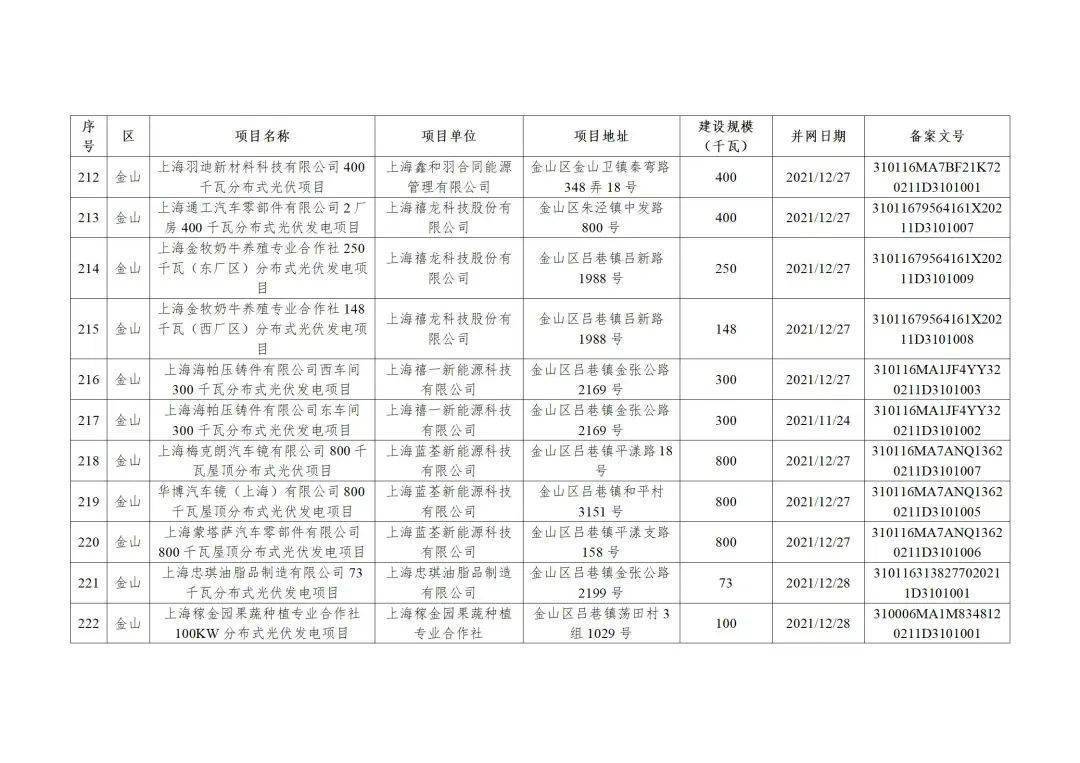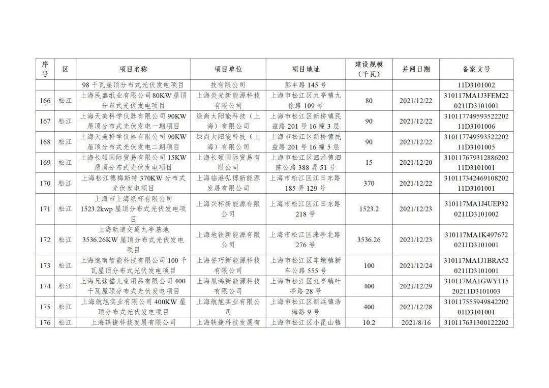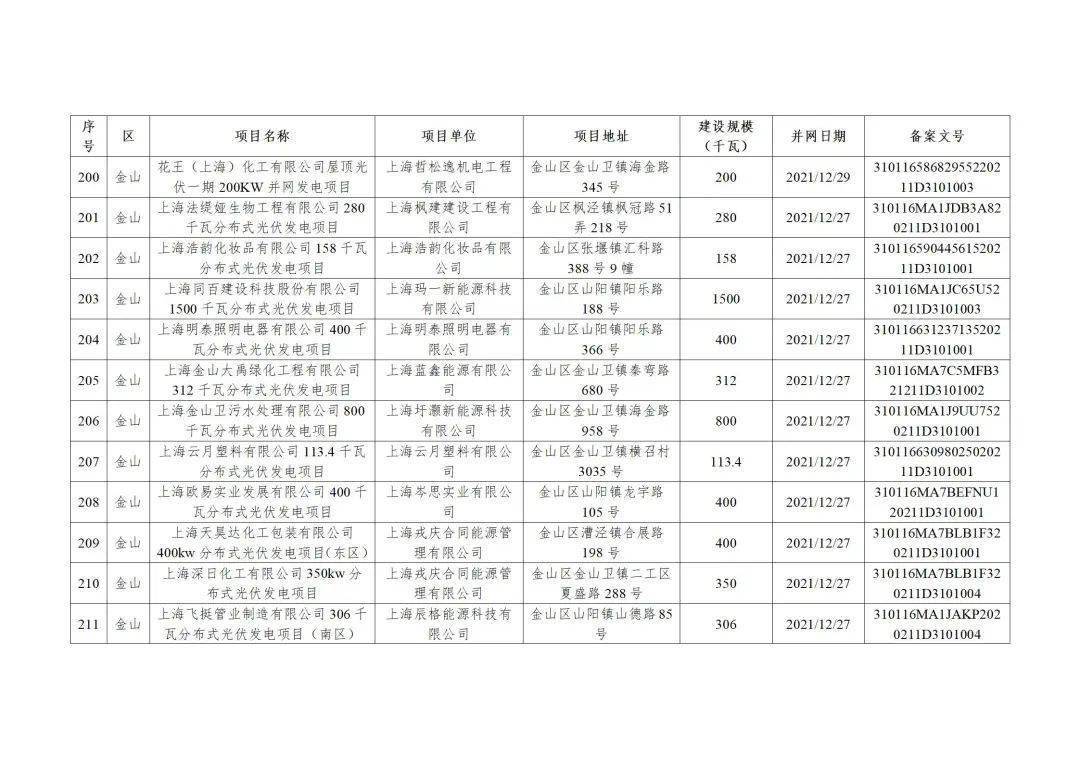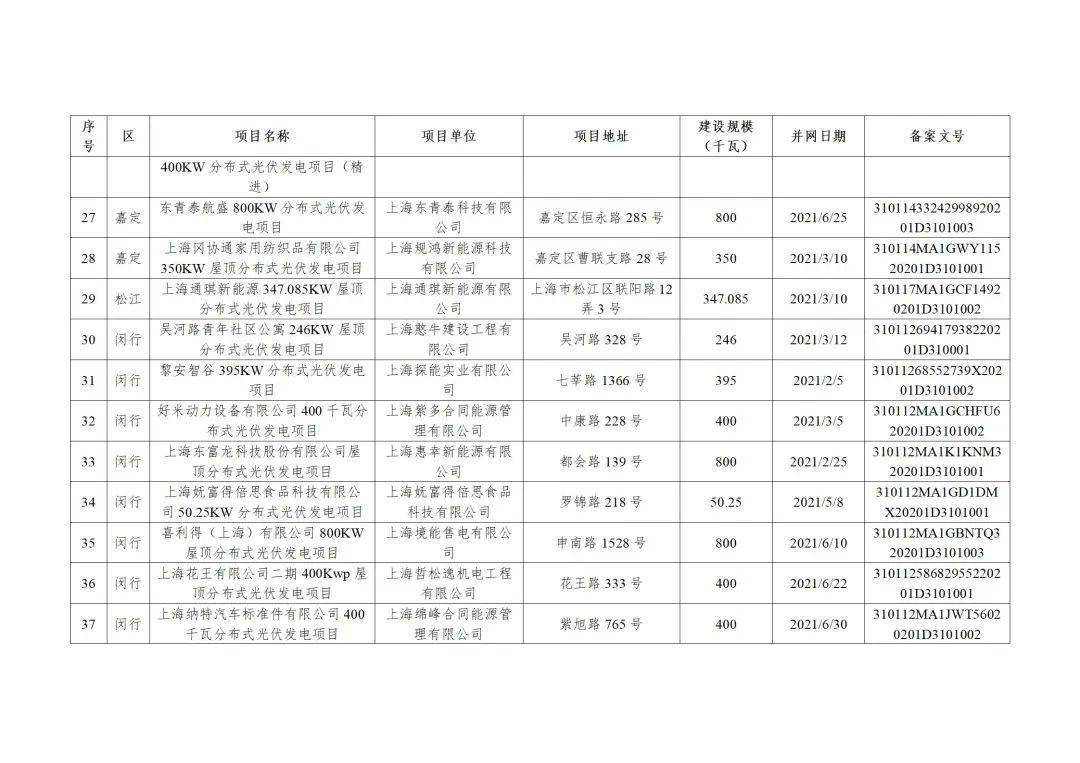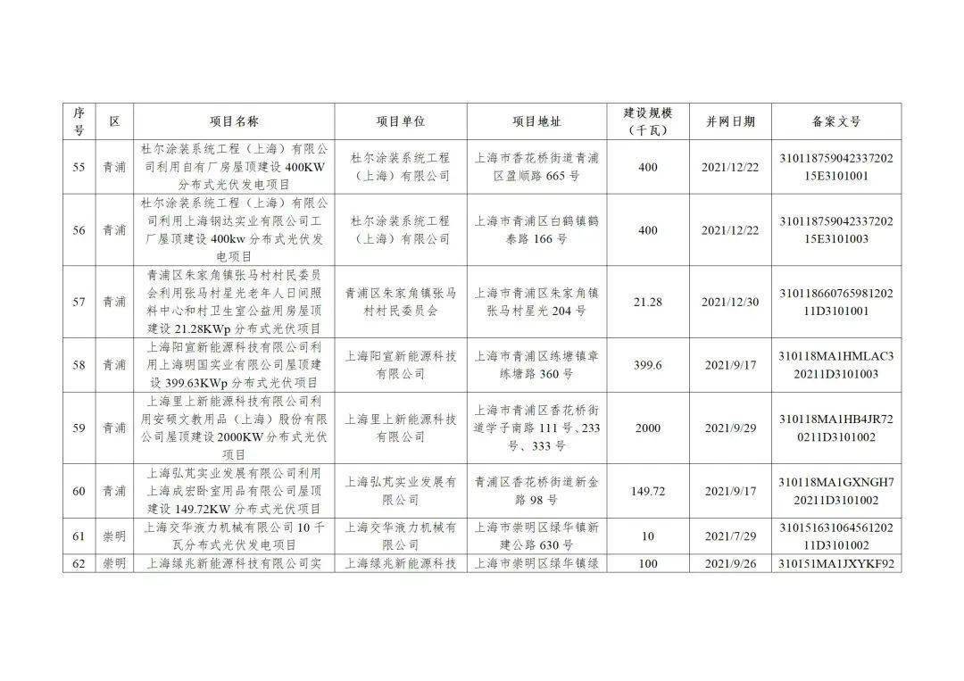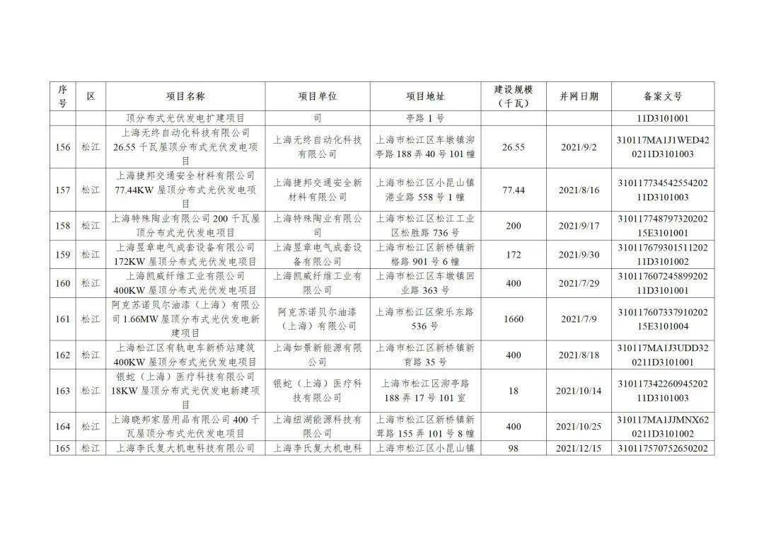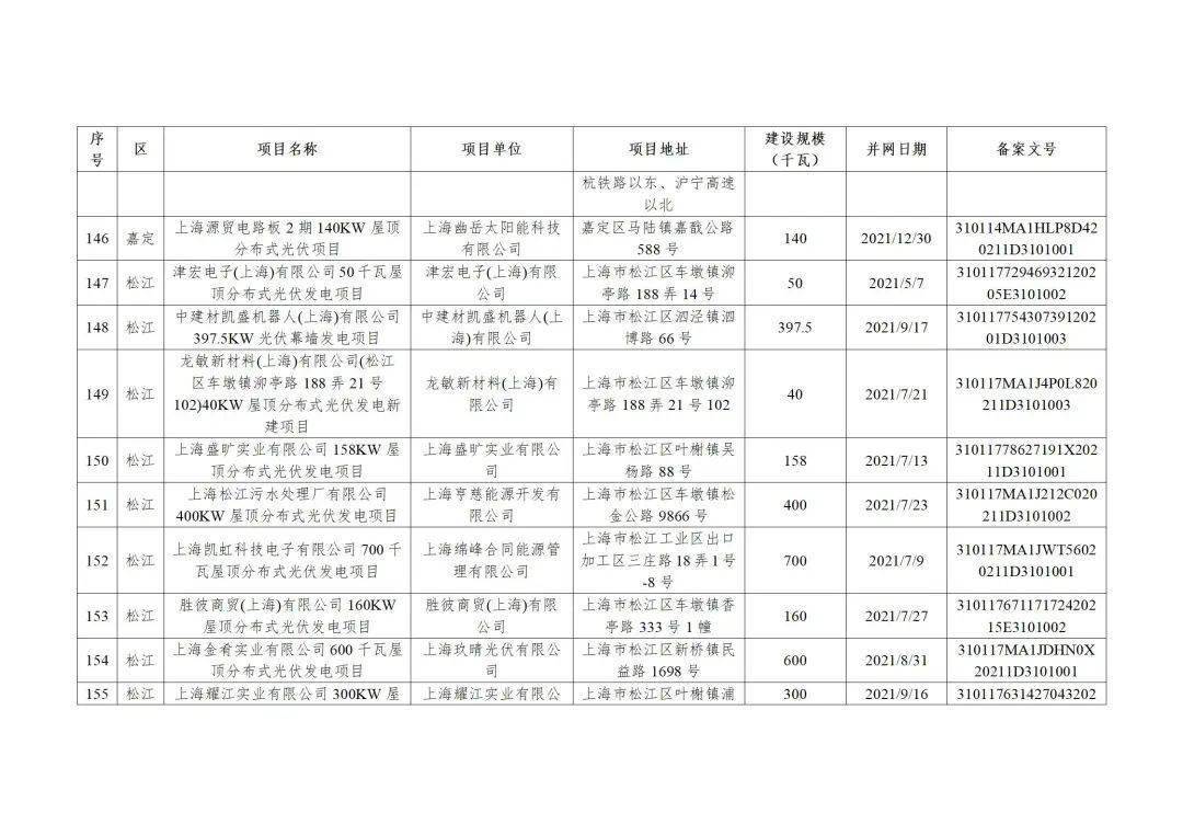附件3:2022年第二批上海市可再生能源和新能源专项资金奖励汇总表(企业分布式光伏项目)
