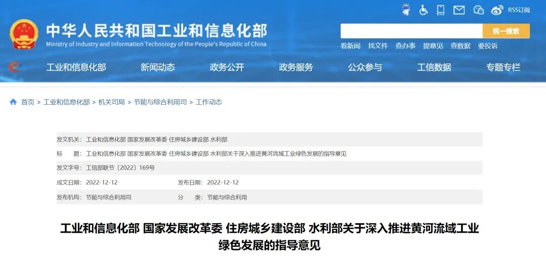 工业和信息化部 国家发展改革委 住房城乡建设部 水利部关于深入推进黄河流域工业绿色发展的指导意见