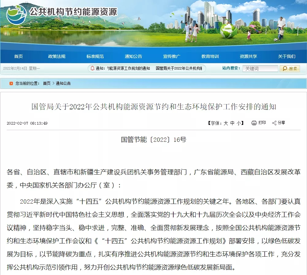 国管局发布《关于2022年公共机构能源资源节约和生态环境保护工作安排的通知》。通知指出,全面落实节能降碳有关工作:(一)推进可再生能源替代。因地制宜推广利用太阳能、...