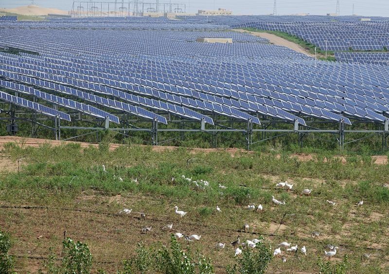 该项目一改治沙只能是公益性的传统理念,通过科技创新,协调各方,让“绿起来”和“富起来”相统一,既利于防沙治沙,又利于实现碳中和目标。光伏板上可以发电,板下可以种植作物,板间还能养殖,一片土地三重利用,农牧民通过光伏种养殖,能过上好日子。建成后可修复治理沙漠10万亩,年均供应绿色电力40亿千瓦时,年节约标准煤125万吨、减少二氧化碳排放341万吨,有效构筑中国北方重要生态安全屏障和黄河流域生态安全屏障。